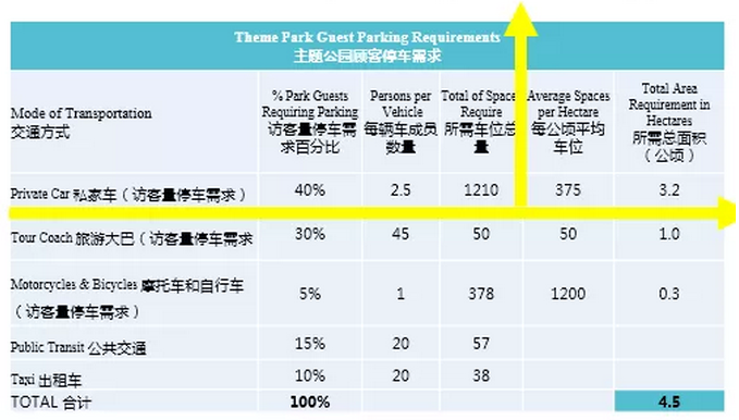 parking lot area of theme park, but they are generally calculated according to